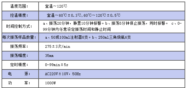 儀器滿足于《GB/T259-88石油產(chǎn)品水溶性酸及堿測(cè)定法》、《GB/T7598-87運(yùn)行中變壓器油汽輪機(jī)油水溶性酸(比色法)》、《SD304-89絕緣油中溶解氣體組分含量測(cè)定法(氣相色譜法)》以及其他理化實(shí)驗(yàn)中的恒溫定時(shí)振蕩。該儀器采用電熱絲加熱,同時(shí)采用了PID控制的自動(dòng)漸進(jìn)加熱方式,保證了較高的控溫精度,并根據(jù)不同的實(shí)驗(yàn)要求,設(shè)置了多種工作方式程序,方便了操作。